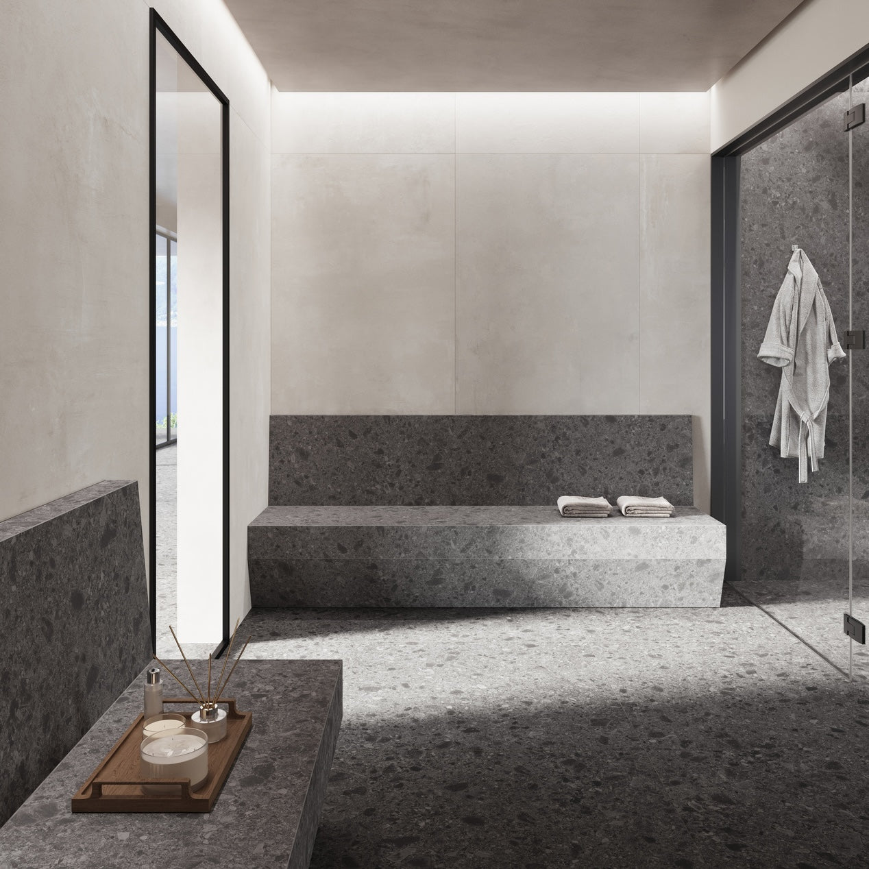 Boost Mix ist die Kollektion aus Wand- und Bodenbelägen in der Optik des Ceppo di Gré, jenem Stein, der mit seiner einzigartigen Grafik das Mailand des 20. Jahrhunderts verkörpert, und mit seinem charakteristischen, kieselsteinartigen Aussehen, das ihm eine unverwechselbare Persönlichkeit verleiht.